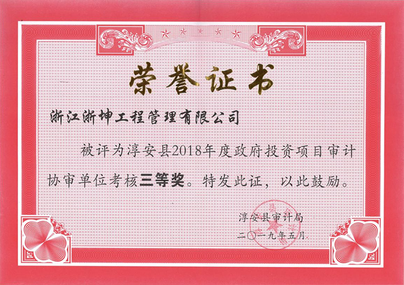 2019年龙泉市财政项目预算审核中心政府投资项目预算审核优秀单位