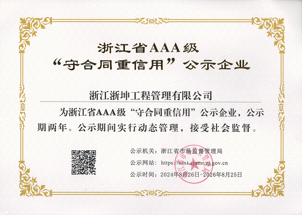 2024年浙江省工程造价咨询企业动态信用能力证书AAAAA